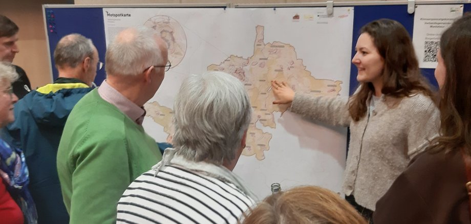 Neben den Analyseergebnissen wurden bestehende Aktivitäten zur Klimaanpassung sowie mögliche weitere Lösungsansätze aufgezeigt. Anschließend konnten sich die Teilnehmenden im Plenum und an Pinnwänden zu Herausforderungen und Erfahrungen austauschen sowie Maßnahmenvorschläge einbringen.